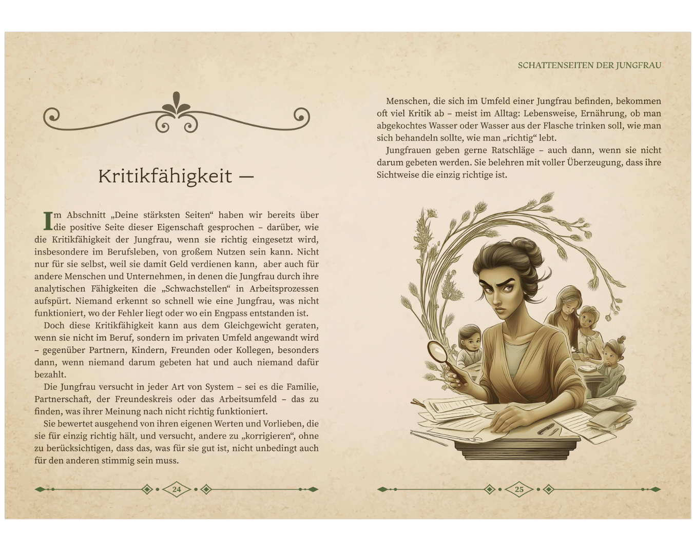 Das ist ein schön illustriertes Buch, im elektronischen Format oder gedruckt auf hochwertigem Papier (44-52 Seiten je nach dem Aszendenten)